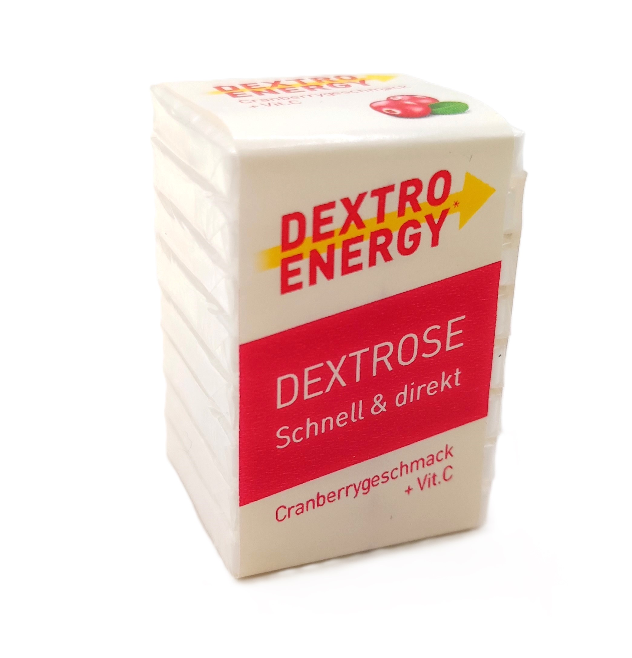 Dextro Energy Żurawina z witaminą C to szybko działające pastylki z dekstrozą - zaprojektowane jako przenośne i łatwe do dawkowania źródło szybko przyswajalnej energii (np. w hipoglikemii lub przy nagłym spadku koncentracji). Produkt występuje w formie kosteczek (w opakowaniu znajduje się 8pastylek). Każda pastylka jest osobno zapakowana w foliowe opakowanie - chroni to je przed wilgocią i ułatwia przechowywanie po otwarciu opakowania. Jedna kostka odpowiada 0,5WW.