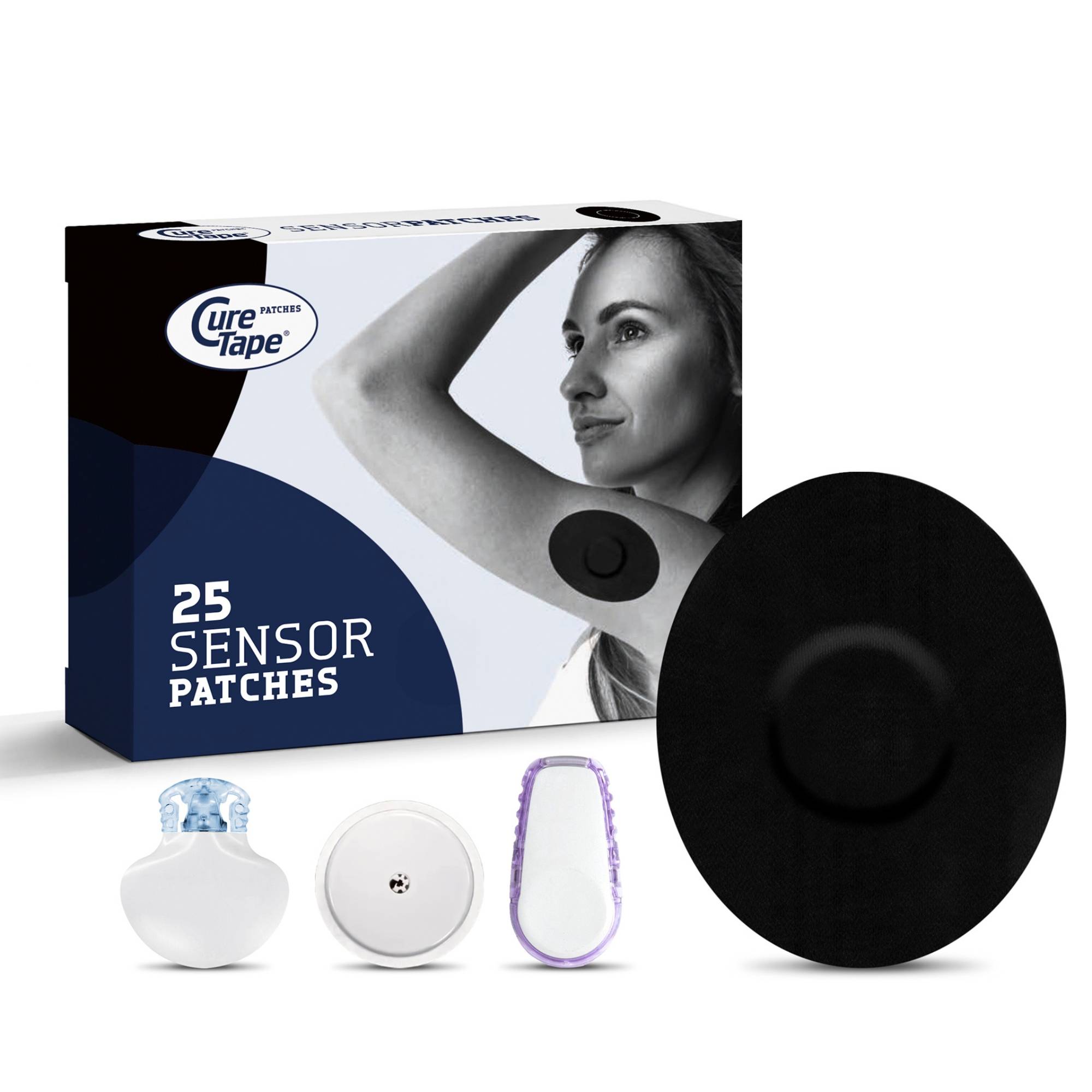 CureTape to zestaw plastrów wykonanych z oddychającego materiału (bawełna) połączonego z hipoalergicznym klejem silikonowym. Konstrukcja plastra łączy przyczepność (stabilne utrzymanie sensora) z miękkością i elastycznością materiału, co minimalizuje tarcie i podrażnienia skóry.